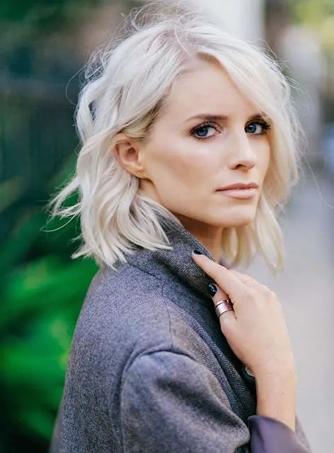 Short Bob Messy Layered Human Hair Wavy Lace Front Wig 12 Inches