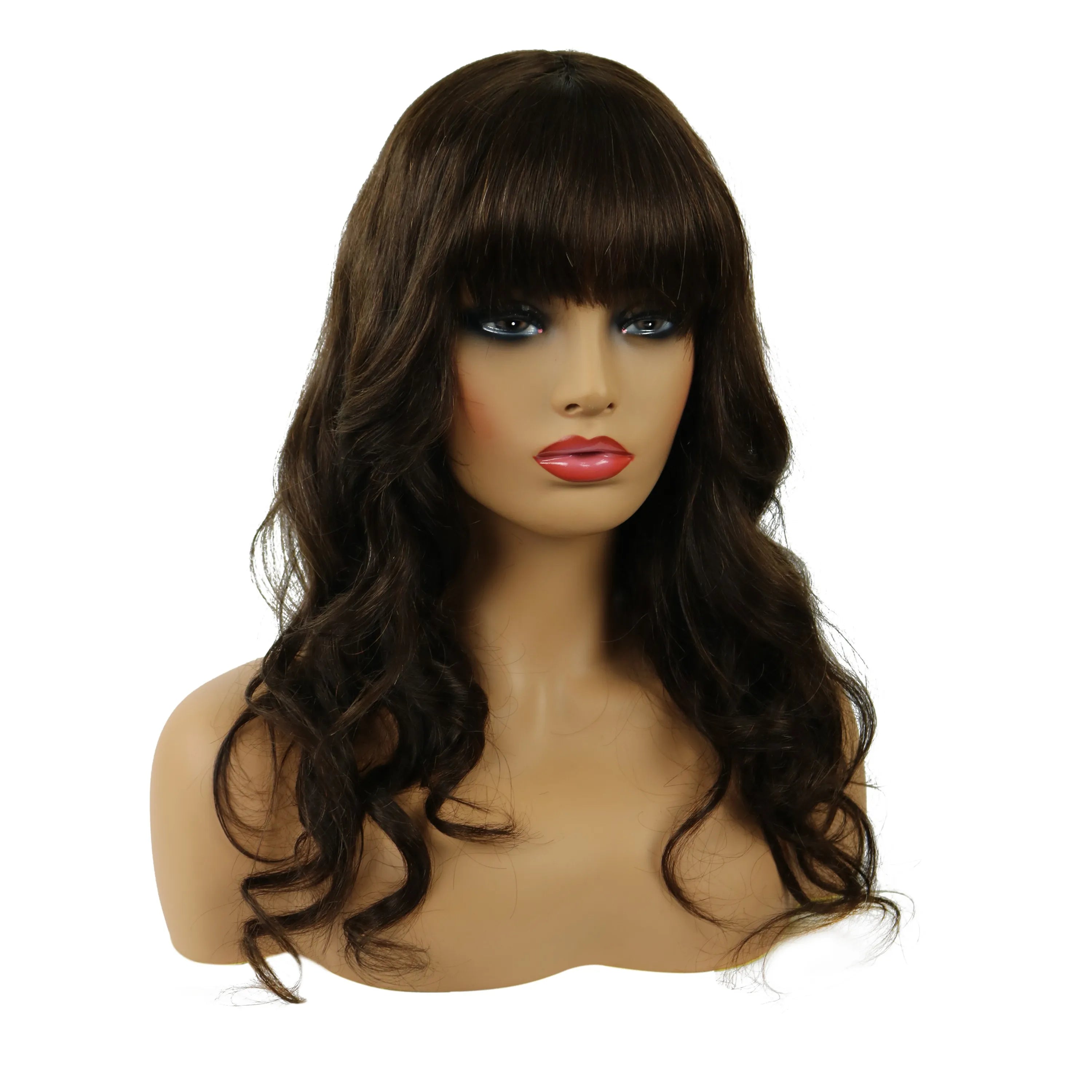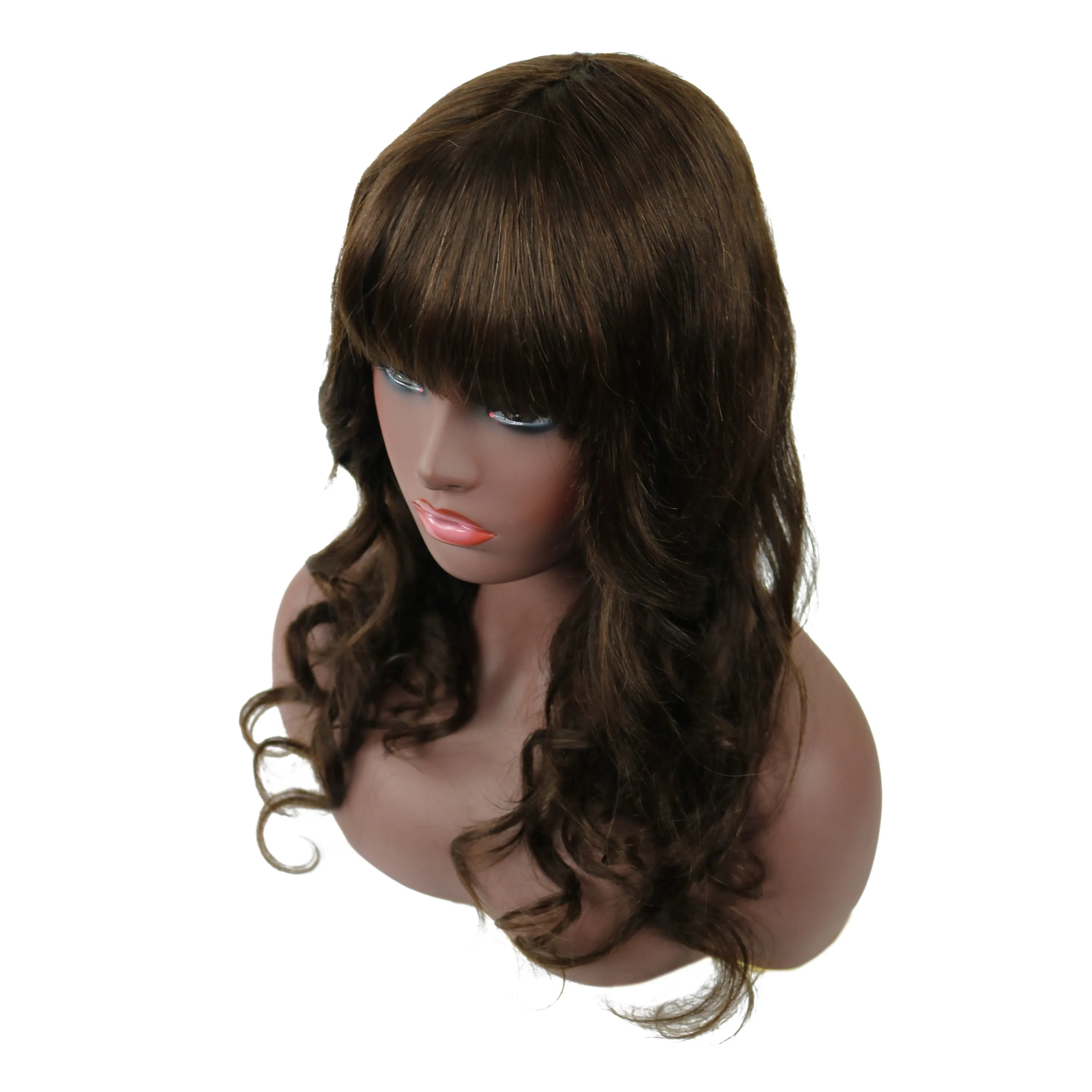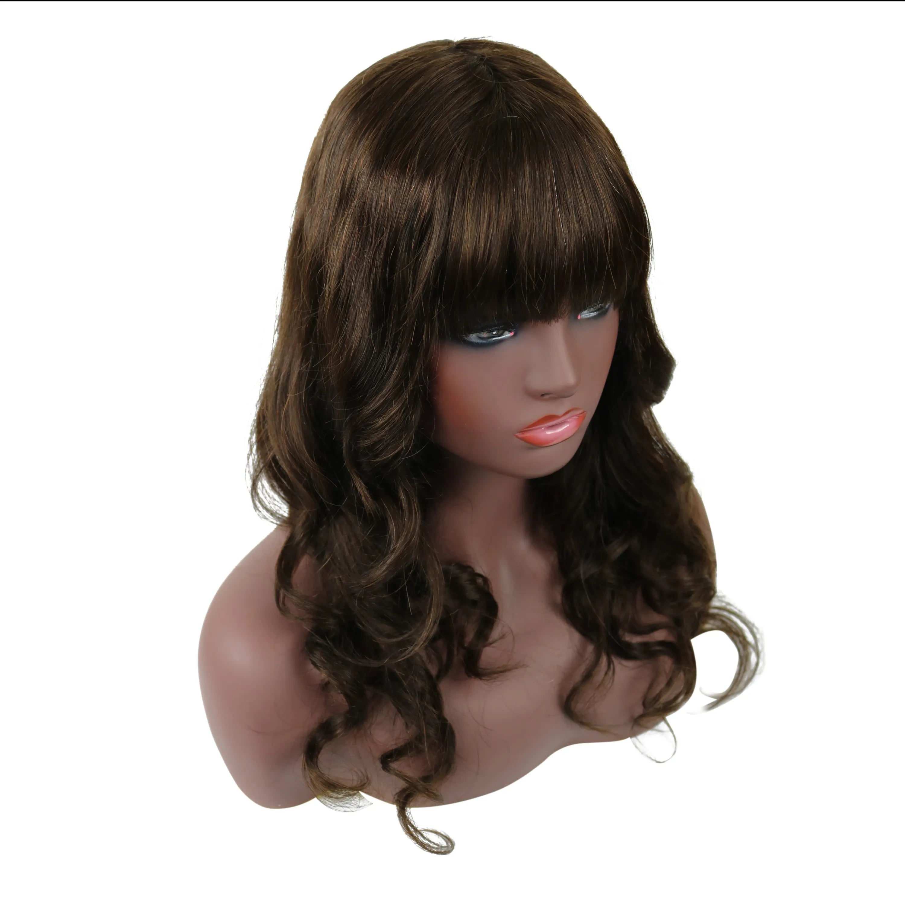 Natural Wave Capless Wig With Full Bangs 18 Inches 100% Human Hair Wig